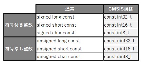 方言のなかでも仕様が異なるのは変数の宣言の仕方のところくらいのものです。STM32マイコンのコンパイラはARM社が定めたCortex-Mシリーズで標準化されたCMSISインターフェース規格に準じています。